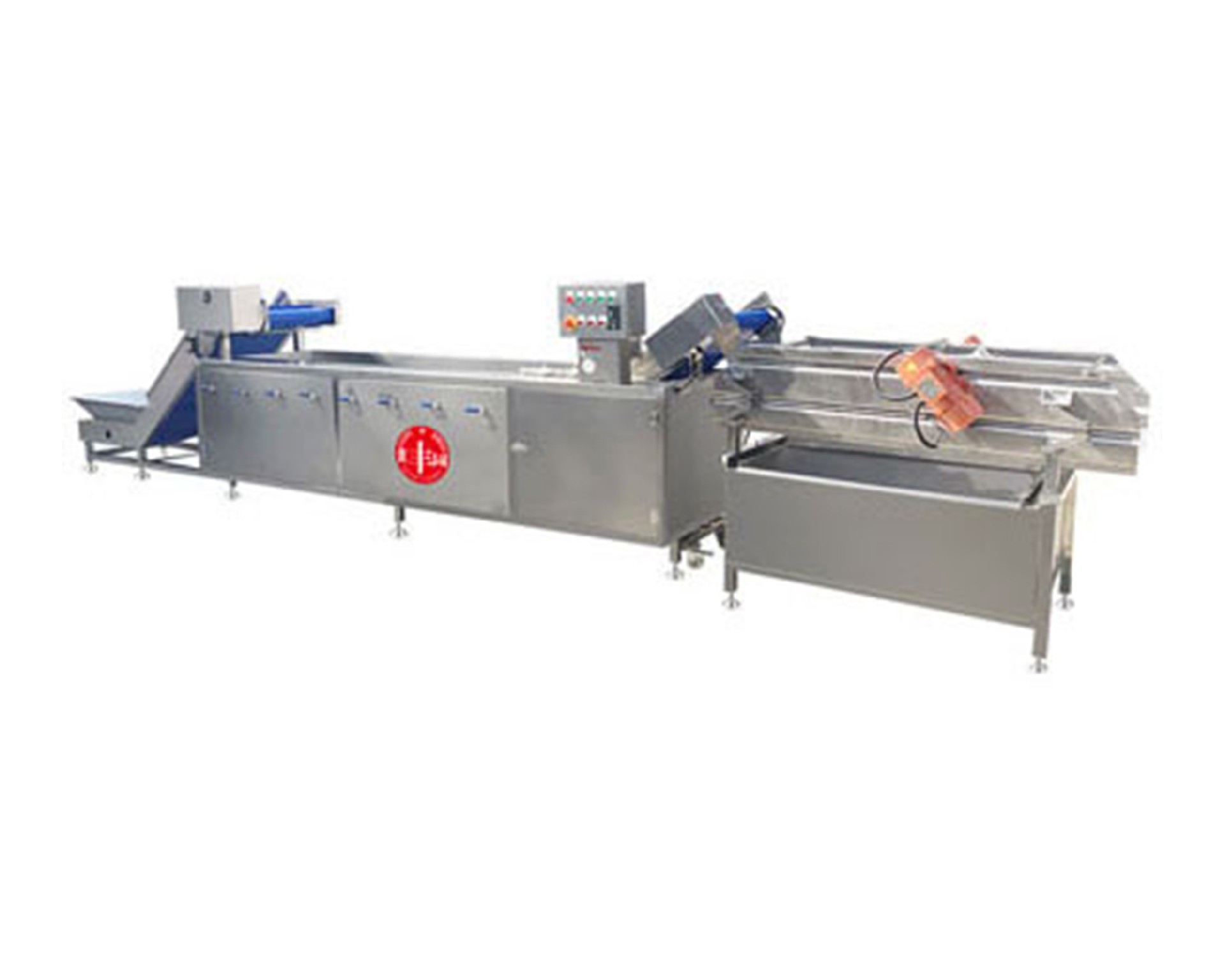 本機(jī)配有提升機(jī)方便放料,氣泡清洗機(jī)采用高壓氣體產(chǎn)生鼓泡,循環(huán)水泵沖浪和提升高壓噴水三重清洗。輸送帶無極可調(diào)、臭氧殺毒等 功能以及全機(jī)身密封包邊處理。美觀大方,做工精良。是目前市面上先進(jìn)的洗菜設(shè)備。有效分離蔬菜上面粘連的泥沙,雜質(zhì)。清洗過程 噴淋和高壓噴嘴持續(xù)供水,供水量可調(diào),方便客戶根據(jù)蔬菜處理量及清潔程度進(jìn)行靈活調(diào)節(jié)。本機(jī)適用于葉菜類蔬菜的清洗,除雜, 輸送。適合凈菜加工場(chǎng),大型食品配送中心等。 | |