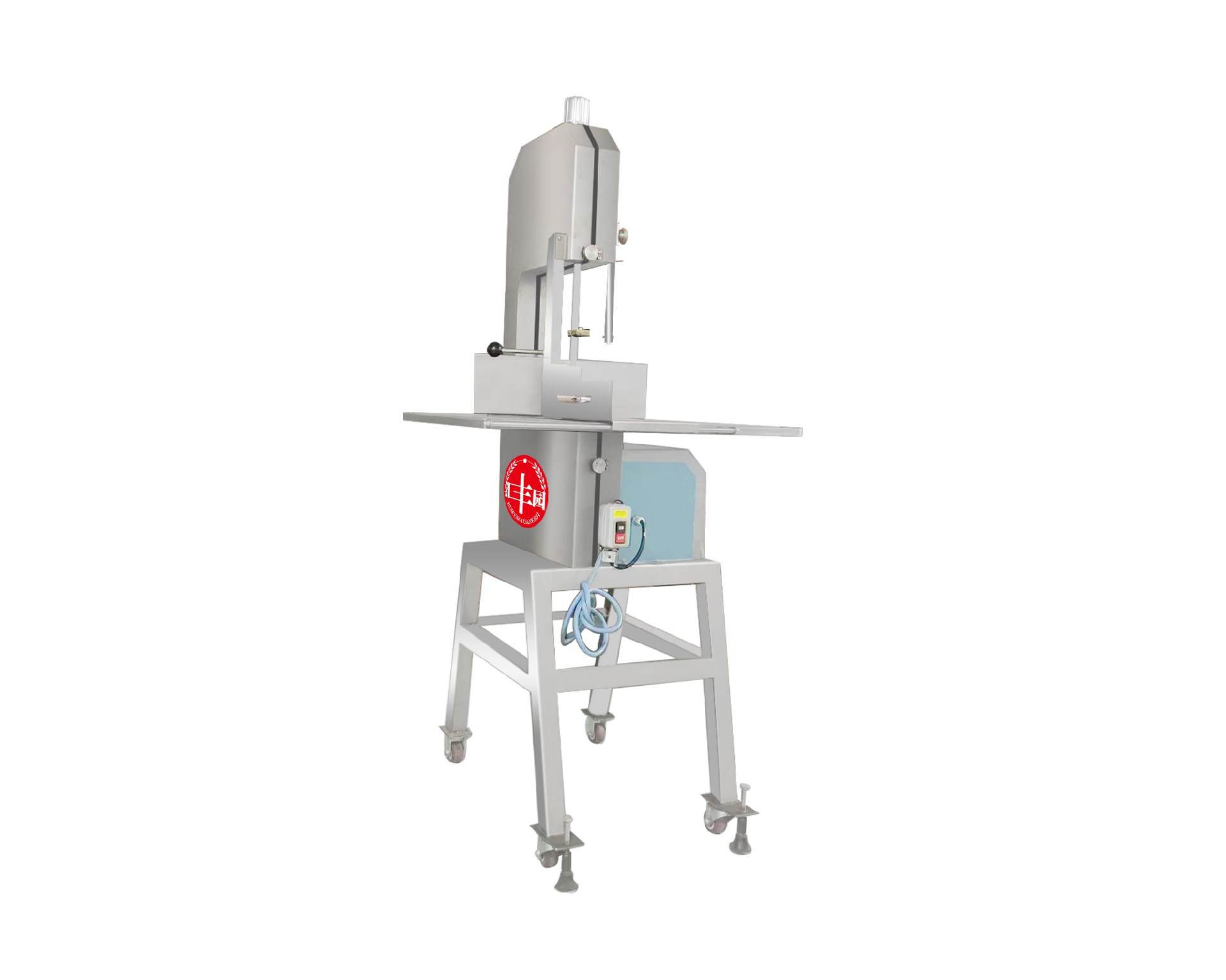 平面式機(jī)身設(shè)計, 不銹鋼封板, 符合食品衛(wèi)生并易于清洗;不銹剛機(jī)門, 表面特殊處理, 容易清理及保養(yǎng);鋸帶壓力張緊裝置, 便于鋸帶安裝及調(diào)整;鋸帶穩(wěn)定裝置, 鋸切時鋸帶穩(wěn)定不會游走 .厚度調(diào)整板加強(qiáng)設(shè)計, 便于調(diào)節(jié)加工厚度, 移動時不會搖動. 適用適用于各類中小型動物骨頭、冷凍肉,帶魚骨,冷凍魚,冰塊的加工等。用于小塊凍肉、排骨的切割。適用于大型集中式食品加工廠、屠宰場、肉聯(lián)加等地使用。