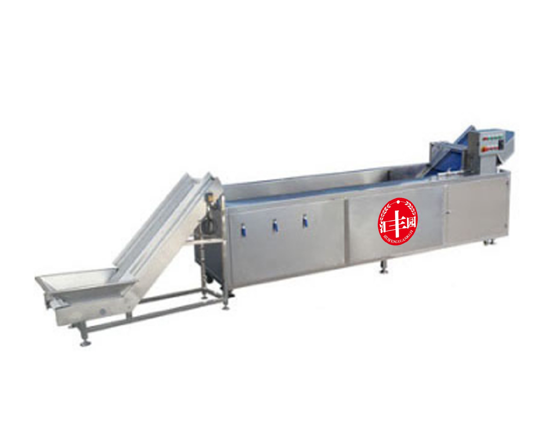 有提升機(jī)和氣泡清洗機(jī)和震動(dòng)輸送機(jī)構(gòu)這三部分組成,提升機(jī)入便入料,氣泡清洗機(jī)采用高壓氣體產(chǎn)生鼓泡,循環(huán)水泵沖浪和提升高壓 噴水三重清洗。輸送帶無極可調(diào)、臭氧殺毒等功能以及全機(jī)身密封包邊處理。美觀大方,做工精良。是目前市面上先進(jìn)的洗菜設(shè)備。有 效分離蔬菜上面粘連的泥沙,雜質(zhì)。清洗過程噴淋和高壓噴嘴持續(xù)供水,供水量可調(diào),方便客戶根據(jù)蔬菜處理量及清潔程度進(jìn)行靈活調(diào) 節(jié)。采用振動(dòng)式輸送替代傳統(tǒng)輸送帶式輸送,結(jié)構(gòu)更簡(jiǎn)單,比傳統(tǒng)輸送帶減少清洗時(shí)間使用更方便。采用進(jìn)口減震臂,保證在持續(xù)穩(wěn)定 的低頻震動(dòng)輸送過程中,有效瀝除多余水分,并為下一道脫水工序提供預(yù)脫水功能。 | |