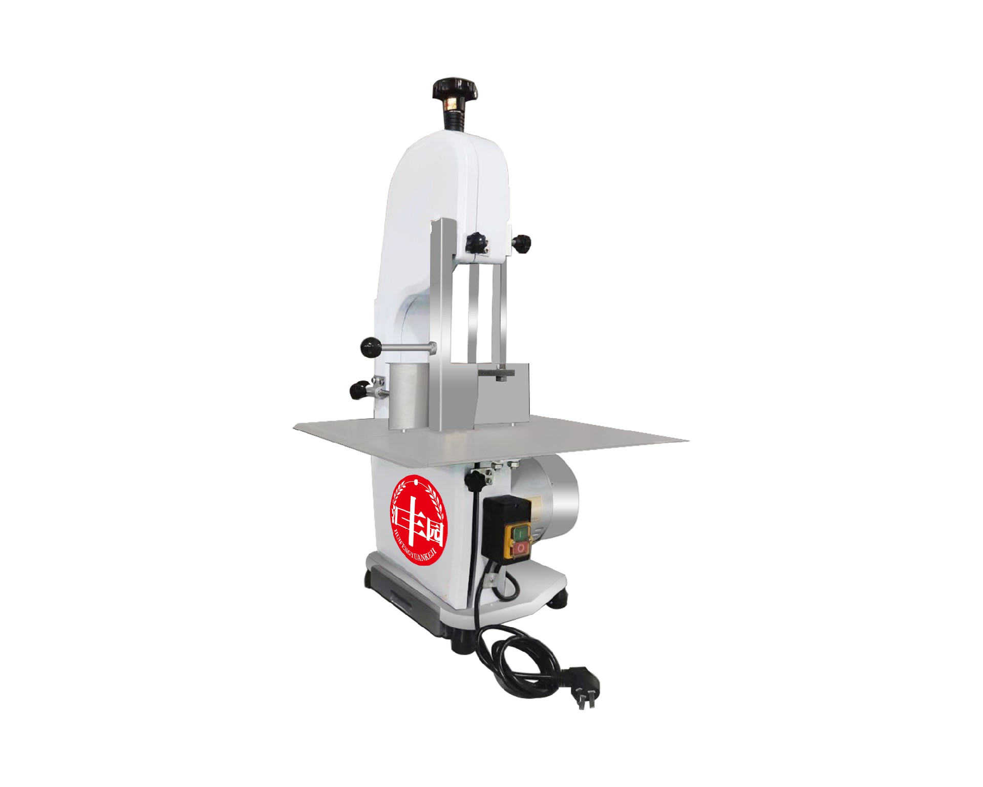平面式機(jī)身設(shè)計, 不銹鋼封板, 符合食品衛(wèi)生并易于清洗;不銹剛機(jī)門, 表面特殊處理, 容易清理及保養(yǎng);鋸帶壓力張緊裝置, 便于鋸帶安裝及調(diào)整;鋸帶穩(wěn)定裝置, 鋸切時鋸帶穩(wěn)定不會游走 .厚度調(diào)整板加強(qiáng)設(shè)計, 便于調(diào)節(jié)加工厚度, 移動時不會搖動. 適用適用于各類中小型動物骨頭、冷凍肉,帶魚骨,冷凍魚,冰塊的加工等。用于小塊凍肉、排骨的切割。適用于大型集中式食品加工廠、屠宰場、肉聯(lián)加等地使用。
